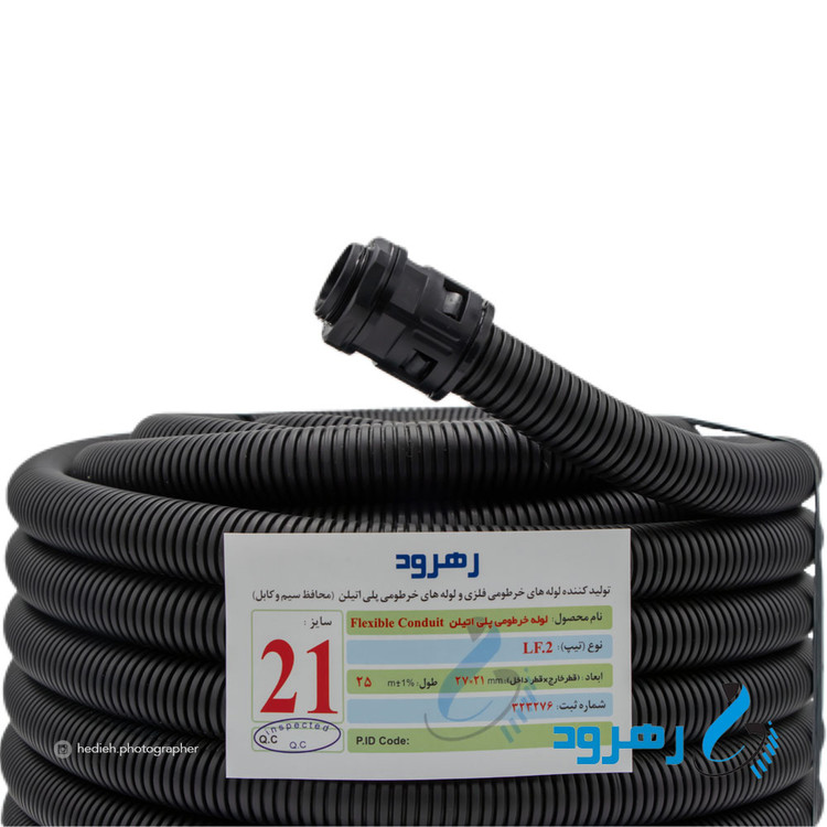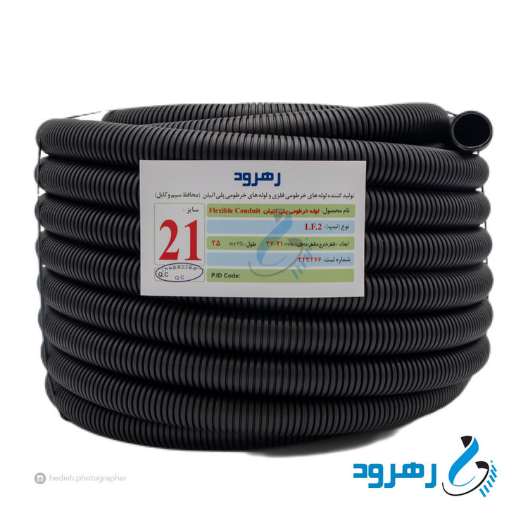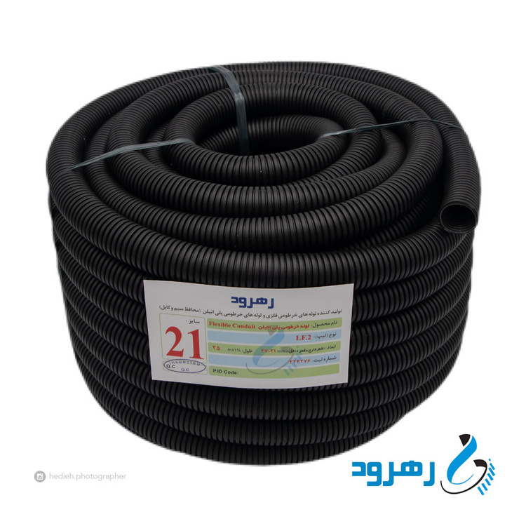لوله خرطومی پلی اتیلن رهرود (پلی فلکسی) سایز 21 مشکی حلقه 25 متری