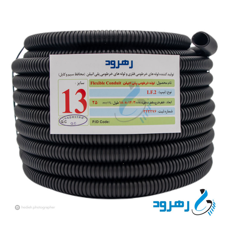 لوله خرطومی پلی اتیلن رهرود (پلی فلکسی) سایز ۱۳ مشکی حلقه 25 متری