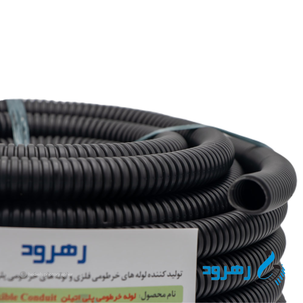 لوله خرطومی پلی اتیلن رهرود (پلی فلکسی) سایز ۱۳ مشکی حلقه 25 متری